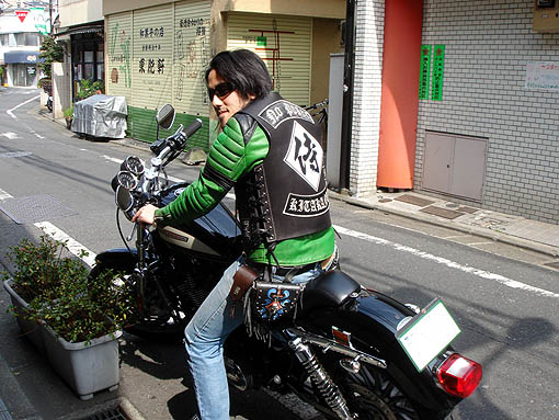 愛車は883R、創美堂のオーダーベストに縫い付けて遊びにきてくれました